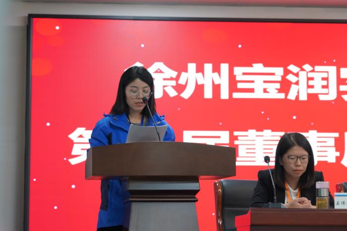 徐州开云(中国)实业上市集团党委常委、办公室主任、人力资源部长郝雪雪宣读候选人简历。
