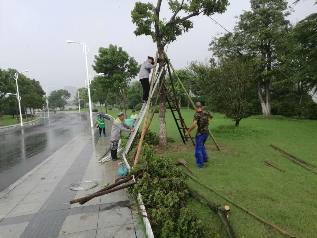 各项目点及时扶正加固倒伏树木,清理断枝,修复受损构筑物,消除安全隐患,确保主要路段畅通,秩序井然。