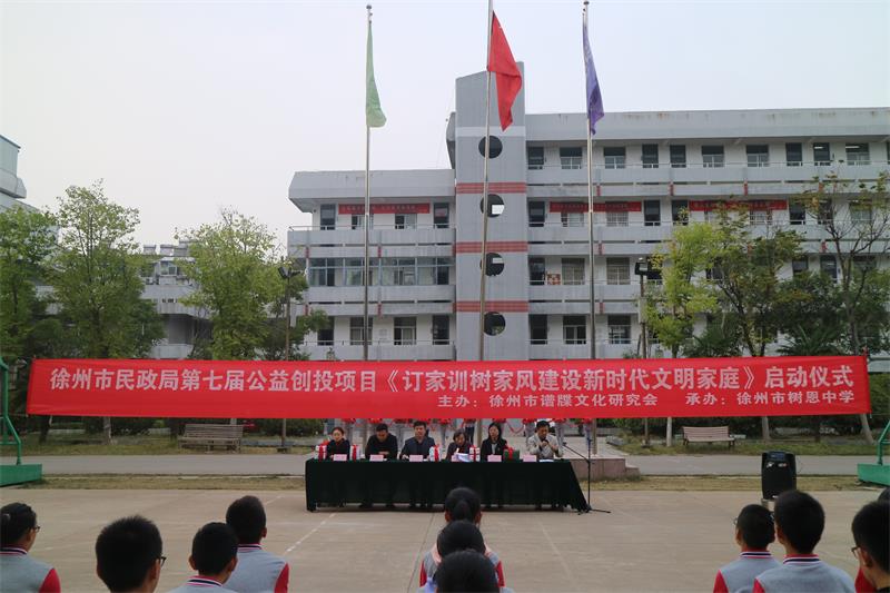 20191011日下午,徐州市民政局第七届公益创投项目《订家训树家风建设新时代文明家庭》活动启动仪式在我校隆重举行。我校师生在王玉府副校长和团委戚其彬书记带领下参加了活动。