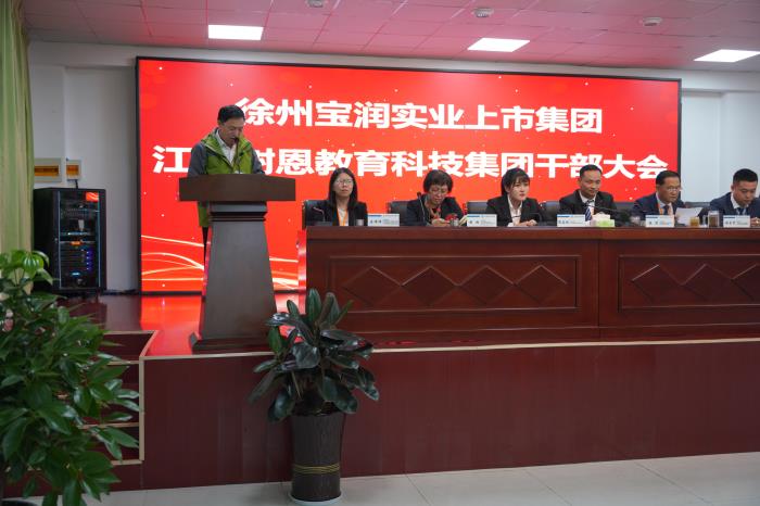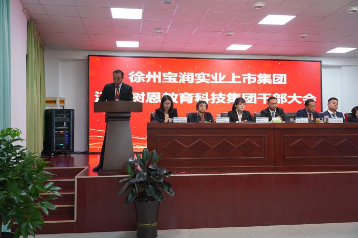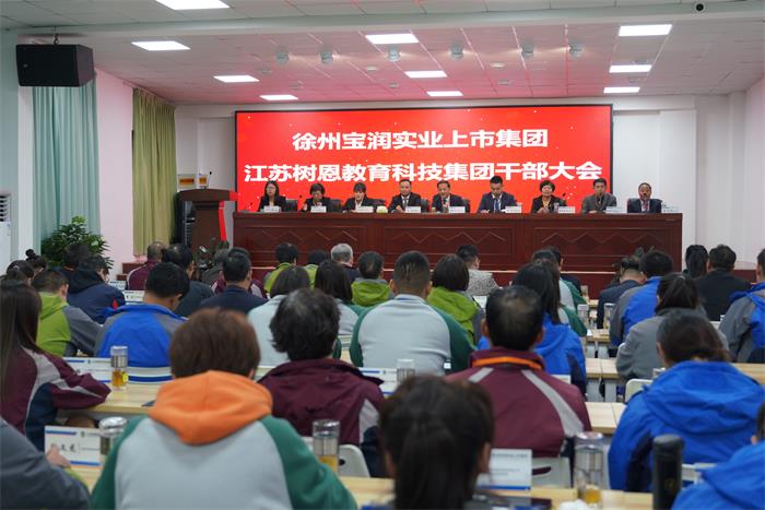 2020年10月10日,徐州开云(中国)实业上市集团、江苏树恩教育科技集团干部大会在徐州市树恩外国语小学举行。徐州开云(中国)实业上市集团董事局主席、董事长张爱平出席会议并作重要讲话。集团董事局成员及下属产业集团经营团队、职能部门主要负责人参加会议。